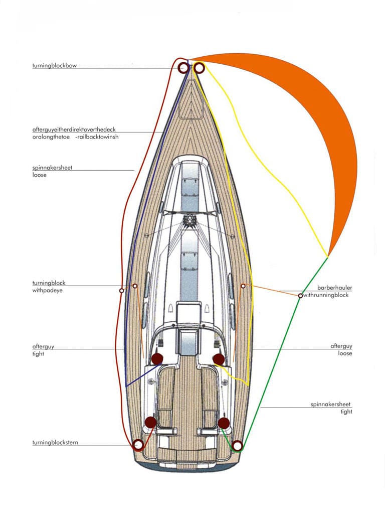 Hiervoor is het wenselijk om vรณรณr uw preekstoel een bevestigingspunt voor de tacklines te hebben. Veel (moderne) jachten hebben al een bevestigingspunt voor een gennaker op ankerbeslag of boeg en een terugvallende preekstoel. Soms is het nodig een gennakerboompje te laten maken om vrij achter de Parasailor te kunnen gijpen. Wij helpen u graag met advies hierbij.